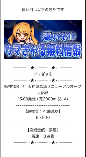 そして次の日の日曜日に公開されていた買い目がこちらになります。