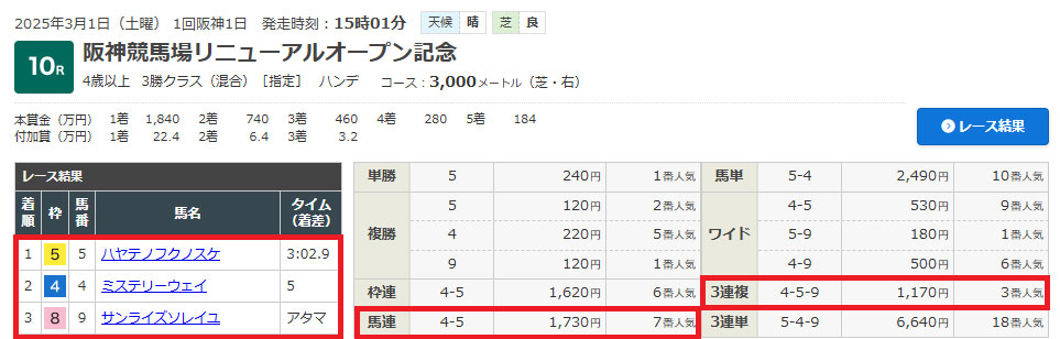 金額は記載がないので1点1,000円の馬連は6,000円と3連複は4,000円の合計で10,000円分馬券を購入しました。