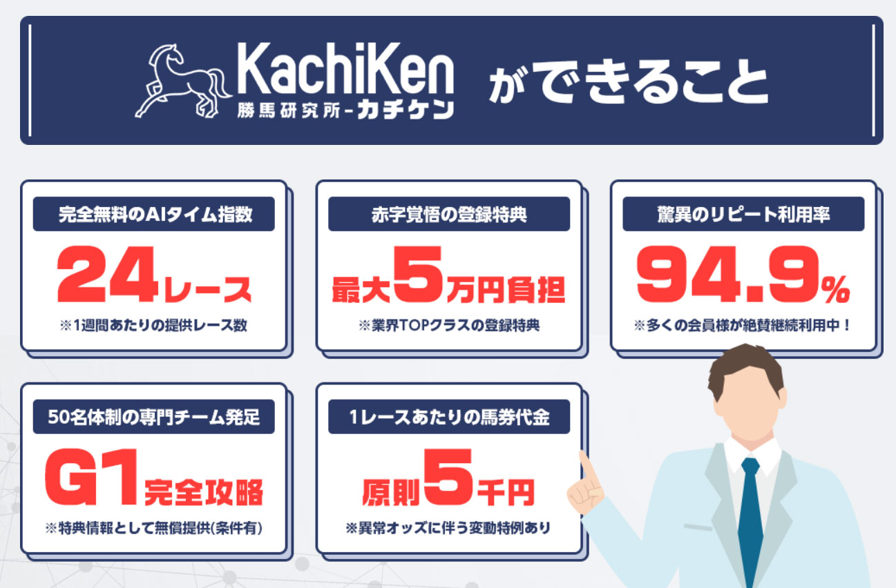 【カチケン】の無料情報と有料情報に参加してみましたが、無料予想は全頭の点数がつけられていて分かりやすく、ご自身の好きな馬券で参加しやすく、高精度のAI予想を公開していることが分かりました!