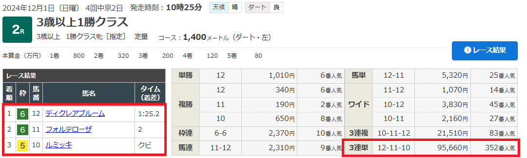 1番人気のレモンポップから上位人気と穴馬も絡んだ馬券になっています。