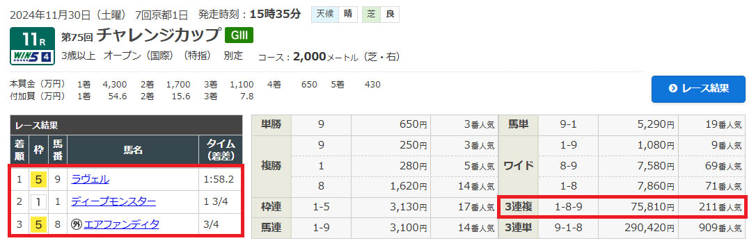 チャンピオンズC(G1)でも的中して3万7050円を獲得していました!
