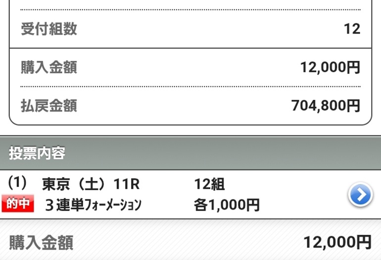 穴馬チャンネルさん無料情報でも出し惜しみしない穴馬情報ありがとうございます。 2着に入った10番人気お見事でした、3連複的中ありがとうございます。 配当も十分満足いく6万8700円ありがとうございました。 穴馬が馬券入ると感情では表せられない喜びがありました!