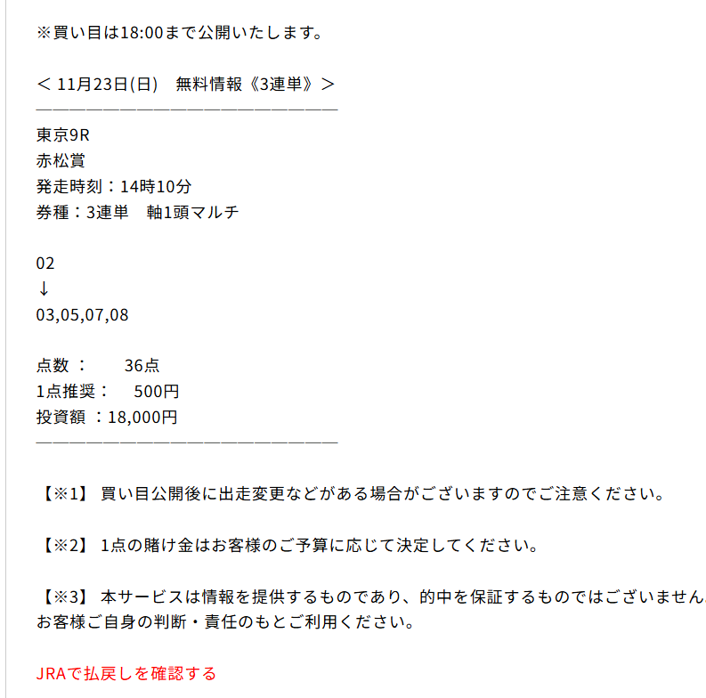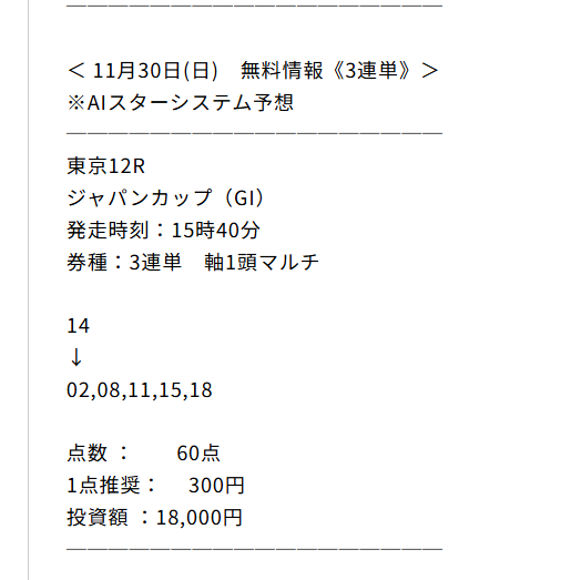 ジャパンカップ的中貰えました!