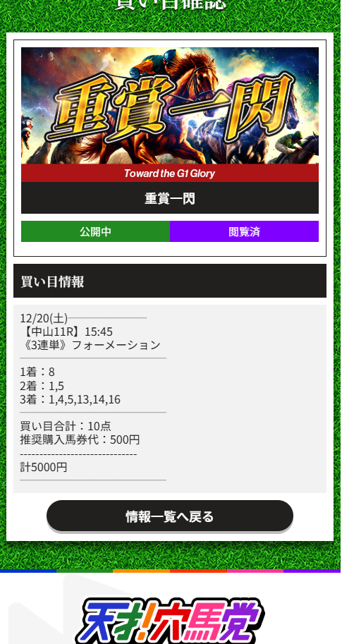 明日も重賞無料で出るよね?楽しみにしています!