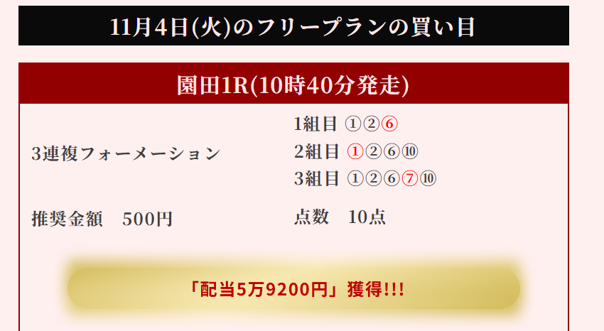 (沢木プラン)3レース提供中2レースが的中