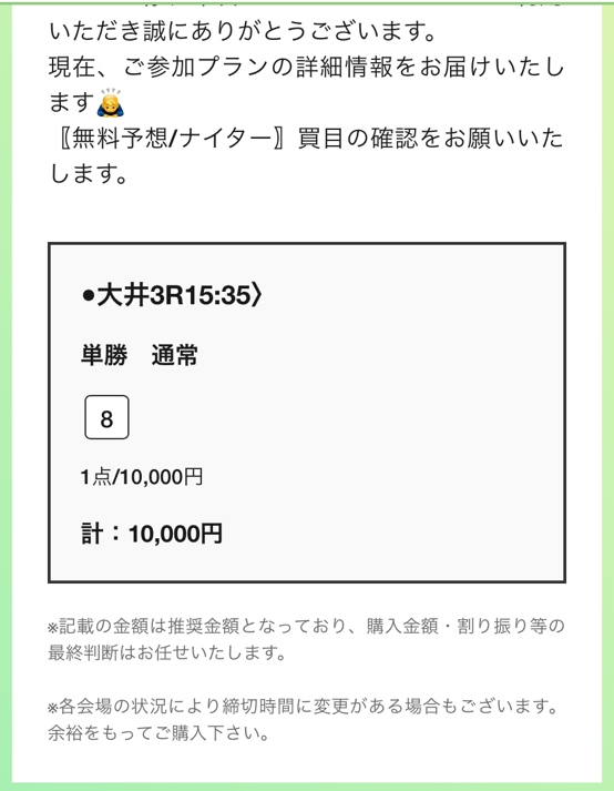 大井1R目で46万9050円的中、次なる大井2Rはめっちゃ惜しくて不的中! 何で①の11番人気を2着固定しちゃったかな、保険で3着目にも入れておいてくれれば3連単528倍の万馬券だったのに! こういう不的中でも意図が見える予想は使ってて面白い、しかも大井1R目では3連単938倍当たってるから何も言えねえっていう!(笑) 継続して地方競馬使おうと思います!