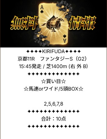 ファンタジーSの予想8入れてたのナイスです!!! 馬連52倍うまし!! 穴馬選ぶのうまいですね!