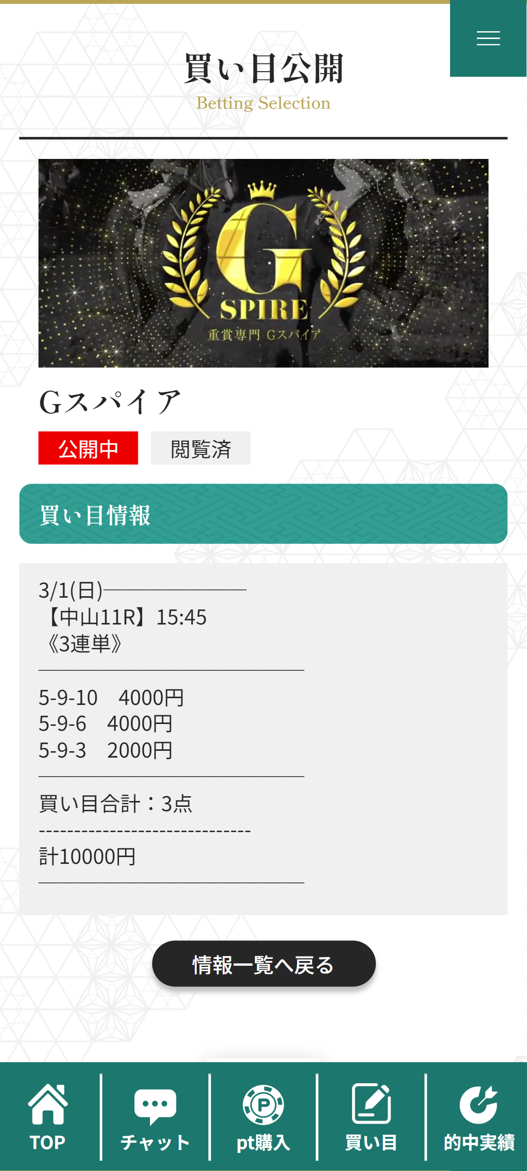 今週勝負レースを極秘公開中!