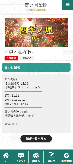 秋のG1戦予想が難しくて全敗だったけど無料予想で9万2360円は嬉しいな。